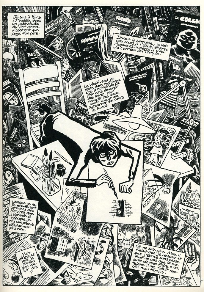 Mentre assistiamo alla maturazione della sua vicenda umana, non possiamo infatti fare a meno di osservare come spettatori incantati un universo grafico in gestazione che sembra germinare direttamente dal quel composto di inquietudini e di esplorazioni giovanili che rendono Il grande male un grande romanzo di formazione. Un orizzonte artistico che, tra demoni e fantasmi più o meno amichevoli, fonda la propria cosmologia attingendo da un crogiolo pressoché inestinguibile di stili, di culture e di epoche. Un mondo perturbante e notturno, ma non per questo meno familiare, impastato della stessa sostanza dei sogni o degli incubi, dove le ombre delle figure che si allungano verso Pierre-François non rispettano le leggi della prospettiva ma solo le proporzioni del suo inconscio. Un mondo in bianco e nero che ad ogni tavola paga fino in fondo il suo debito – largamente riconosciuto dall’autore – con Hugo Pratt, Will Eisner, José Muñoz.
