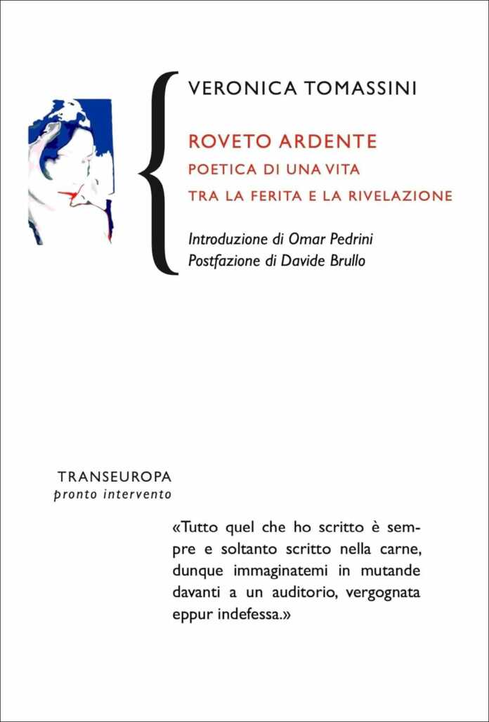 Leggere le parole di Veronica Tomassini è affondare in una vertigine di riflessione, afferrare la spirale mostruosa e lirica del pensiero nel precipizio di una visione rivelativa. Ascoltare la sua poetica significa essere attraversati, da lettori, da un’esperienza che concentra il labirintico e ipnotico fluire della scrittura nella devota e significativa arte evocativa dell’essenza interiore. Roveto ardente consegna una profonda, estrema e profetica offerta all’esercizio efficace della letteratura, in riferimento all’autentico impulso personale dell’autrice, all’invisibile spazio di una primordiale promessa, incisa in modo indelebile nella sacrificale, mistica, liturgica stesura narrativa.
